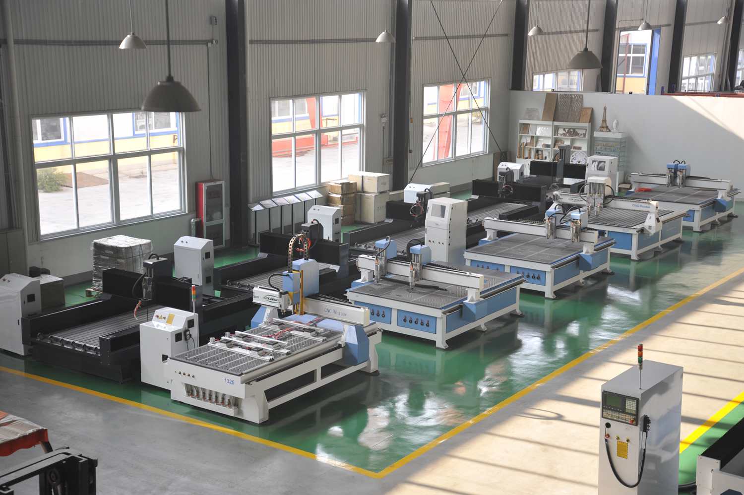 生产的产品经CE,FDA,TUV,SGS,ISO9001认证,主要有:木工雕刻机,数控开料机,全自动开料机,木工加工中心,板式家具生产设备,(单臂)PTP排钻数控中心,多工序木工雕刻机,三维立体木工雕刻机,多头浮雕机,保丽龙泡沫雕刻机,五轴加工中心,四轴 模具雕刻机,石材雕刻机,石材加工中心,石英石加工中心,石英石台面加工设备,玉石雕刻机,模具雕刻机,工艺礼品雕刻机,玻璃雕刻机等,同时还支持各种雕刻机的加工定制。目前公司旗下的产品畅销全国各地,在很多地方都有办事处,并且产品出口到亚洲、欧洲、北美洲、南美洲、非洲等数十个国家和地区。